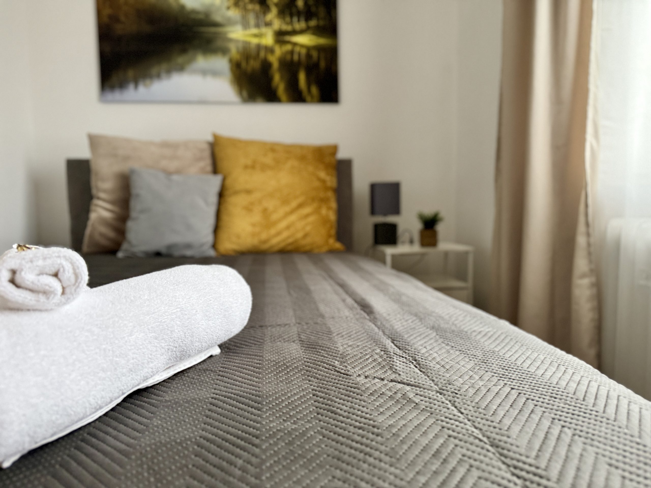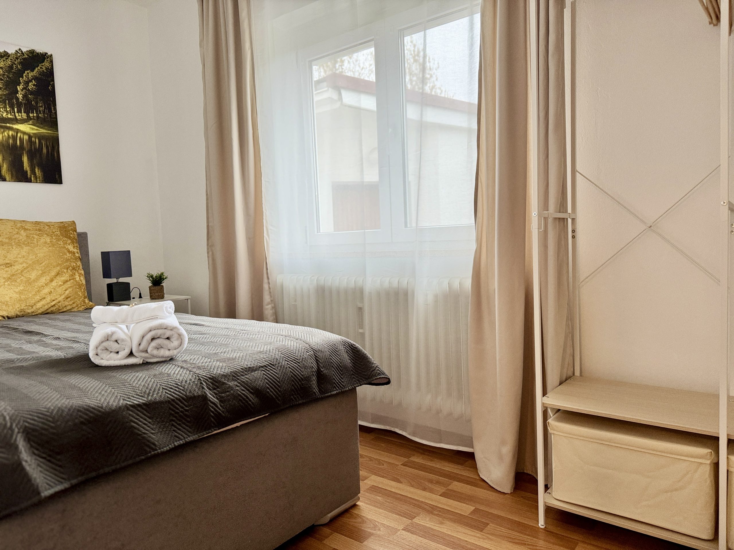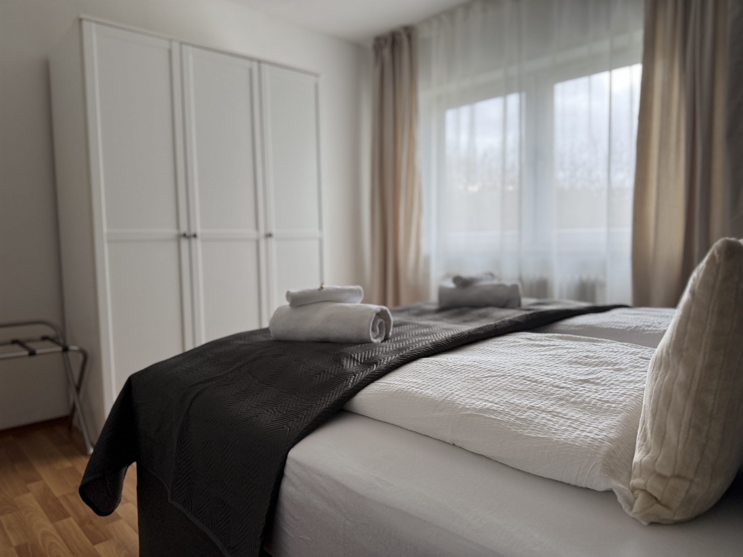 Je nach Buchung stehen 1 Schlafzimmer für 2 Personen und/oder 2 Schlafzimmer für jeweils 1 Person zur Verfügung. So können in insgesamt 3 Schlafzimmern bis zu 4 Personen in der Wohnung gebucht werden. Im Wohnzimmer steht zusätzlich eine separate Schlafcouch zur Verfügung die auf Anfrage zusätzlich für eine weitere Person gebucht werden kann.