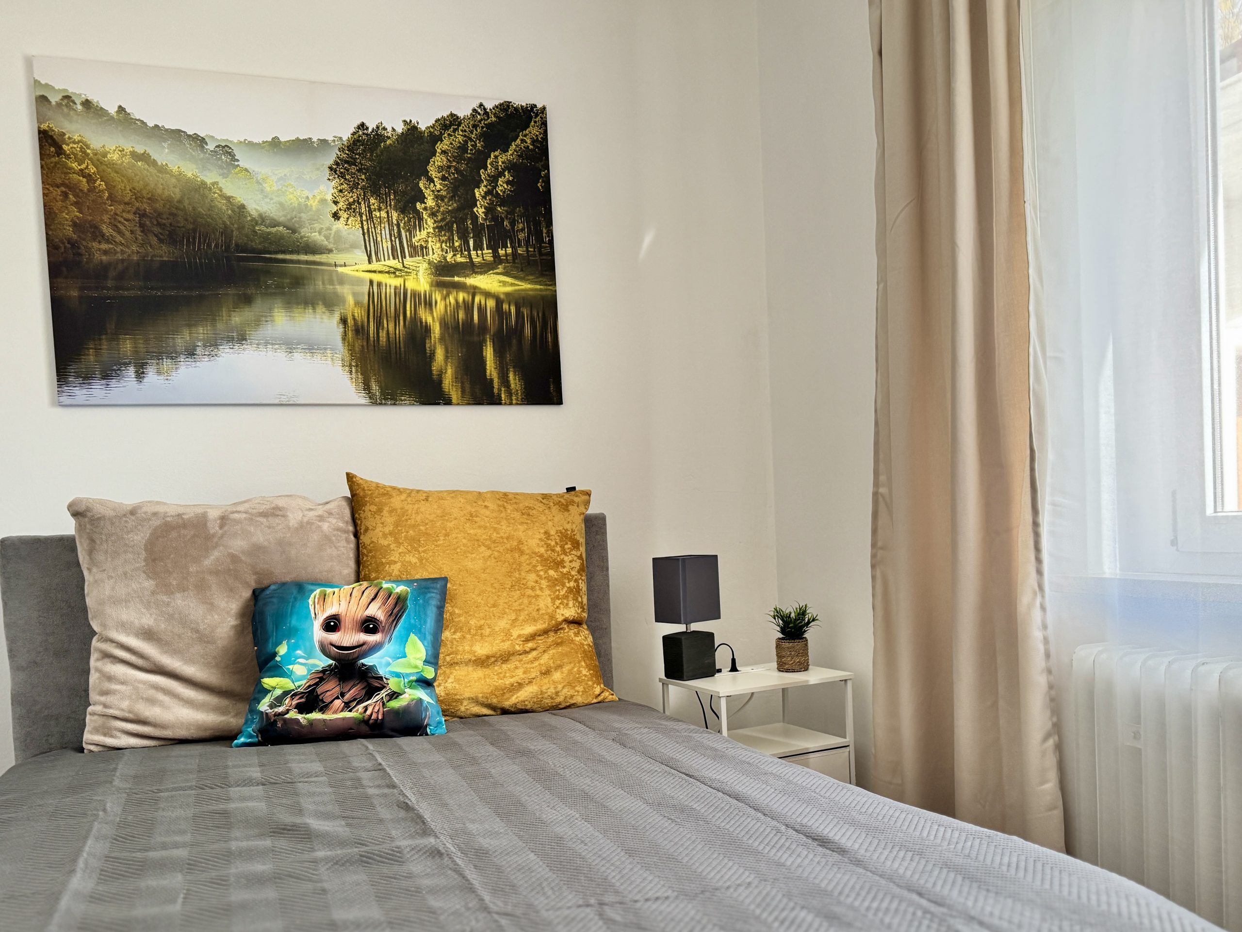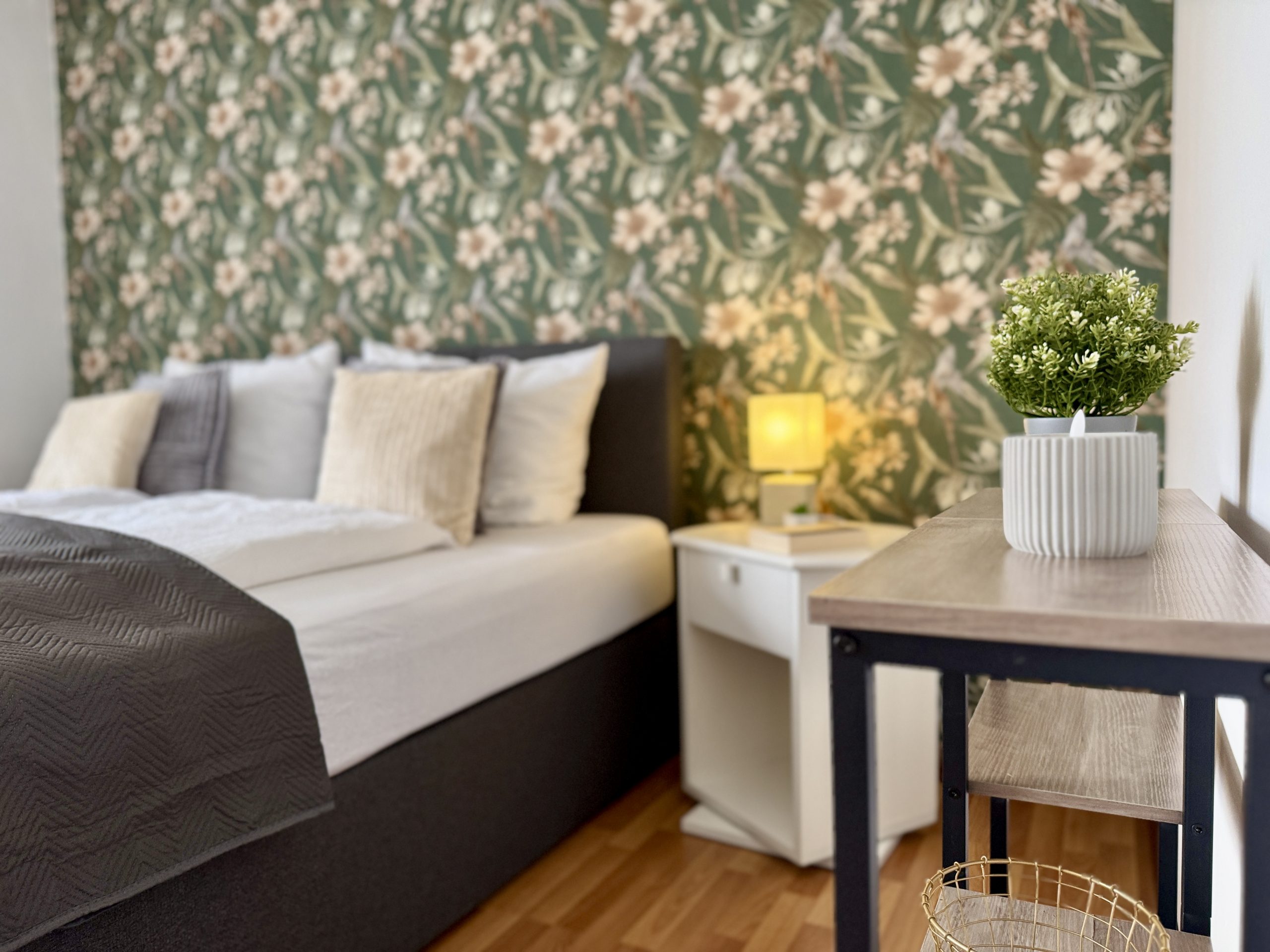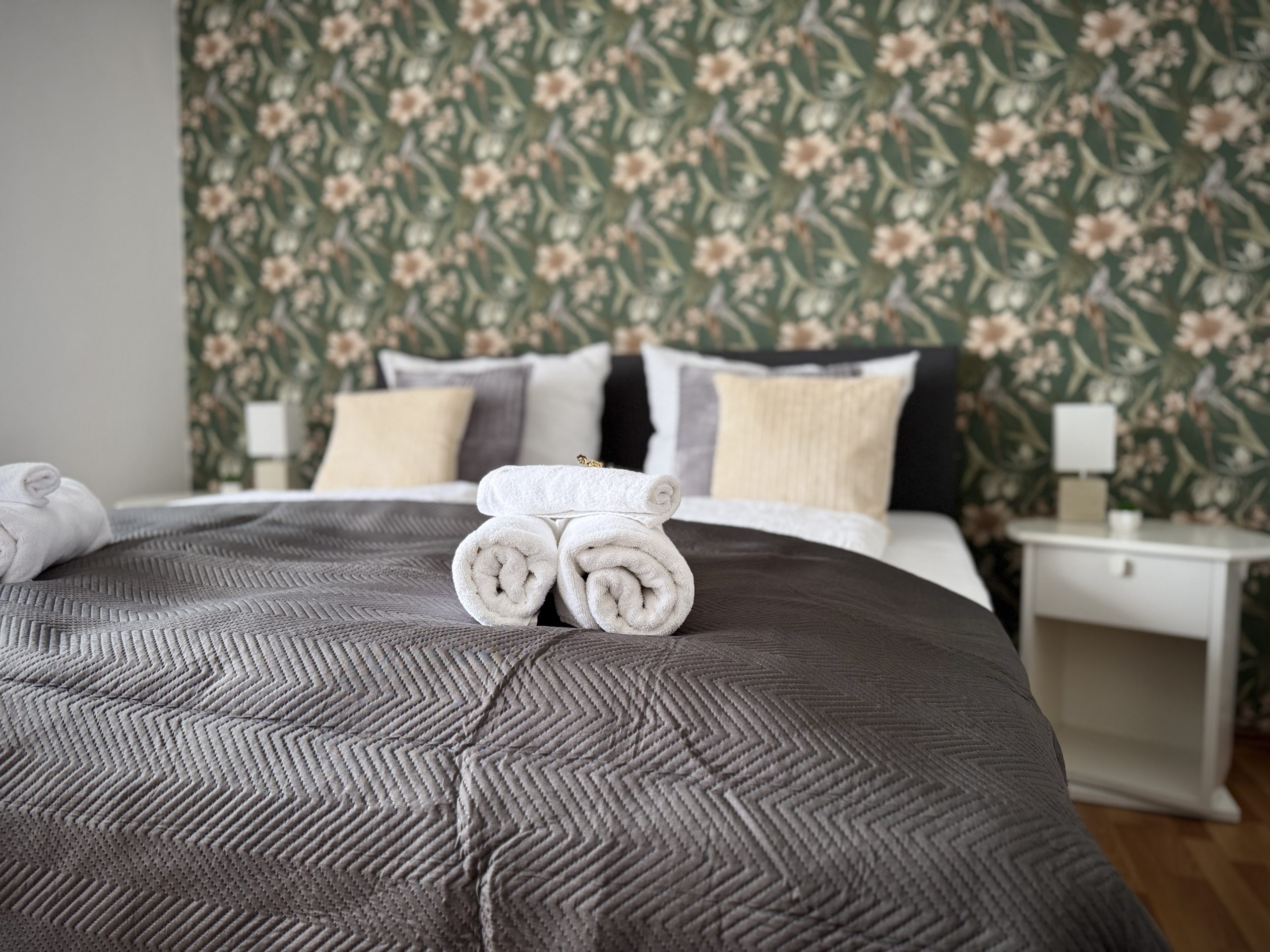 Je nach Buchung stehen 1 Schlafzimmer für 2 Personen und/oder 2 Schlafzimmer für jeweils 1 Person zur Verfügung. So können in insgesamt 3 Schlafzimmern bis zu 4 Personen in der Wohnung gebucht werden. Im Wohnzimmer steht zusätzlich eine separate Schlafcouch zur Verfügung die auf Anfrage zusätzlich für eine weitere Person gebucht werden kann.